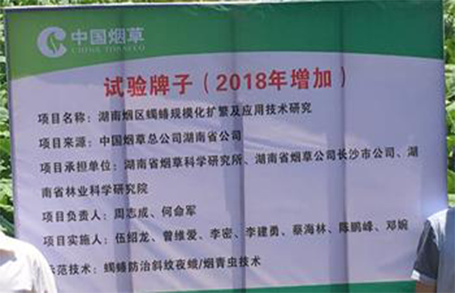 2016-2018 年,長(zhǎng)沙煙區(qū)推廣赤眼蜂防治斜紋夜蛾、煙青蟲(chóng)共10萬(wàn)畝,異色瓢蟲(chóng)防治煙蚜、斜紋夜蛾、煙青蟲(chóng)共 1.8 萬(wàn)畝,蠋蝽在長(zhǎng)沙、衡陽(yáng)各示范推廣 50 畝,郴州、永州、湘西自治州各示范推廣300畝,湖南省合計(jì)推廣面積1000畝。減少防治煙田害蟲(chóng)農(nóng)藥用量80%以上,對(duì)煙田害蟲(chóng)的防治效果達(dá)到75% 以上。