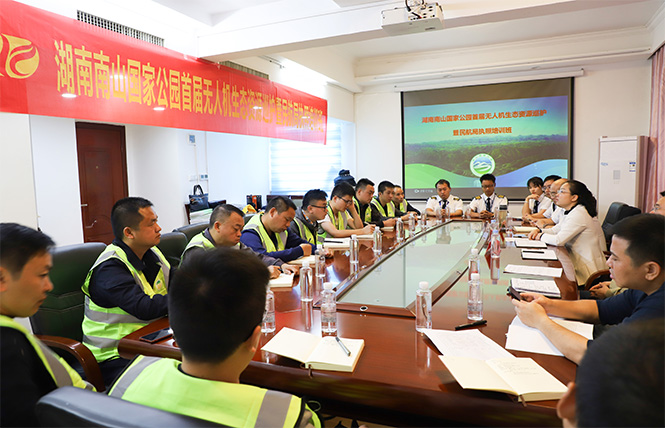 黃飛宇總經(jīng)理表示,南山國家公園,有著非常豐富的野生動植物資源,其中1100余株國家Ⅰ級重點(diǎn)保護(hù)野生植物資源冷杉,國家一級保護(hù)動物林麝,國家一級保護(hù)動物白頸長尾雉,國家二級重點(diǎn)保護(hù)動物鴛鴦,以及娃娃魚、雕鸮、貓頭鷹、紅腹錦雞等珍稀動植物陸續(xù)被人們發(fā)現(xiàn)。通過無人機(jī)打造一支強(qiáng)有力的生態(tài)巡查保護(hù)隊伍,已經(jīng)勢在必行。湖南林科達(dá)無人機(jī)培訓(xùn)學(xué)院,已經(jīng)成功舉辦過16期無人機(jī)專業(yè)應(yīng)用培訓(xùn),為林業(yè)系統(tǒng)、水利系統(tǒng)及公安系統(tǒng)輸送了300多名合格的無人機(jī)駕駛員。本次培訓(xùn)班我們高度重視,希望和全體學(xué)員一起,以高度的責(zé)任心,承擔(dān)起南山森林公園守護(hù)者的責(zé)任與榮耀,打造出首支南山國家公園不可或缺的無人機(jī)護(hù)衛(wèi)隊!