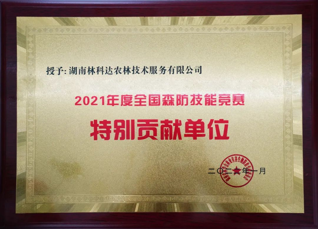 隨后,與會(huì)領(lǐng)導(dǎo)為湖南林科達(dá)頒發(fā)了《2021年度全國森防技能競賽特別貢獻(xiàn)單位》《2021年度守信用重質(zhì)量企業(yè)》榮譽(yù)牌,以示表彰。