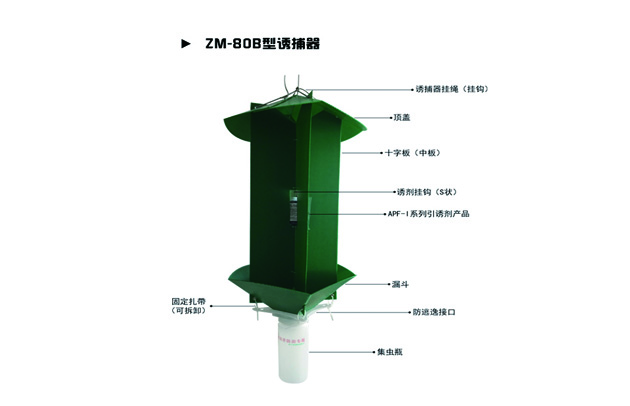 主要構(gòu)件包括頂蓋、十字擋板、漏斗、防逃逸接頭和集蟲瓶。