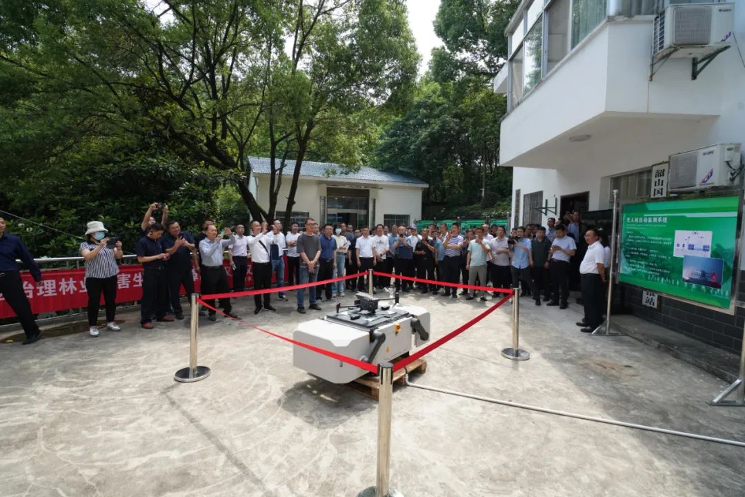 在林科達工作人員的講解下,與會人員參觀韶山市林業(yè)局林業(yè)有害生物防治標(biāo)準(zhǔn)示范站林業(yè)有害生物防控體系建設(shè)工作。