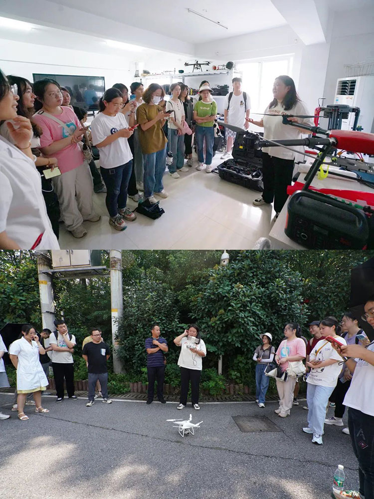 林科達(dá)童星宇教官向師生們介紹了林科達(dá)研發(fā)的無人機(jī)投放載荷設(shè)備,“無人機(jī)投放載荷設(shè)備的研發(fā)是防治技術(shù)在農(nóng)林業(yè)生產(chǎn)上的重要應(yīng)用突破,為生物天敵的關(guān)鍵釋放步驟增添了新的技術(shù)手段”?;顒?dòng)最后,童教官帶領(lǐng)師生來到戶外,向他們演示了無人機(jī)的飛行操作。