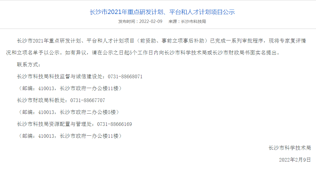 根據(jù)國(guó)家、省、市對(duì)科技創(chuàng)新工作的部署要求,近年來(lái),長(zhǎng)沙市科技計(jì)劃項(xiàng)目每年面向全市發(fā)布項(xiàng)目申報(bào)指南,公開分類征集,與應(yīng)征單位簽訂項(xiàng)目合同,實(shí)行事前立項(xiàng)事后資助方式予以資金支持。2021年5月,長(zhǎng)沙市科技局發(fā)布《關(guān)于發(fā)布2021年長(zhǎng)沙市科技計(jì)劃項(xiàng)目申報(bào)指南的通知》,通知中提到,2021年長(zhǎng)沙市科技計(jì)劃項(xiàng)目申報(bào)按科技重大專項(xiàng)、自然科學(xué)基金、重點(diǎn)研發(fā)計(jì)劃、平臺(tái)和人才計(jì)劃進(jìn)行分類組織,本次公開征集的項(xiàng)目為重點(diǎn)研發(fā)計(jì)劃、平臺(tái)和人才計(jì)劃兩大類。