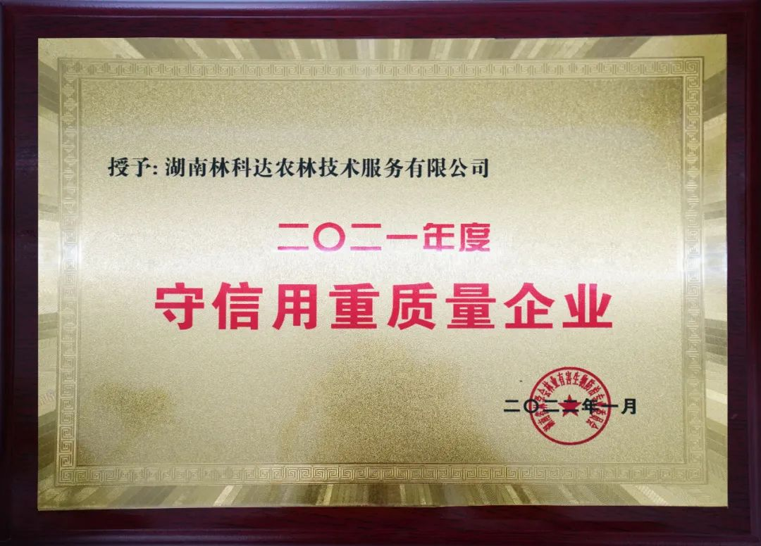 隨后,與會(huì)領(lǐng)導(dǎo)為湖南林科達(dá)頒發(fā)了《2021年度全國森防技能競賽特別貢獻(xiàn)單位》《2021年度守信用重質(zhì)量企業(yè)》榮譽(yù)牌,以示表彰。